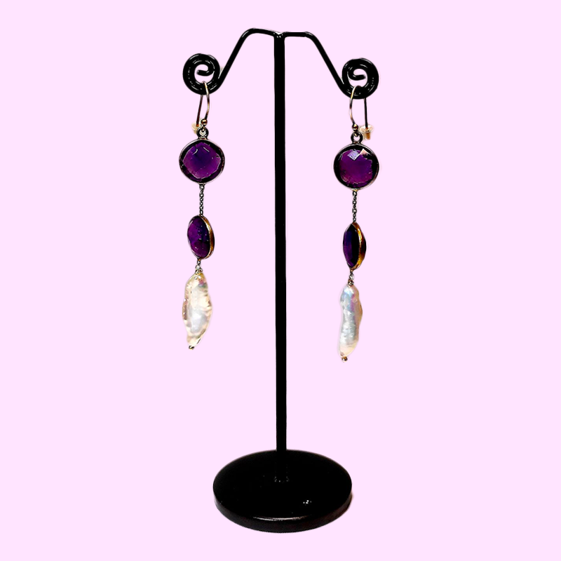Boucles d'oreilles Or Plaqué, Améthyste et Perles de CultureBoucles d’oreilles Or Plaqué, Améthyste et Perles de Culture