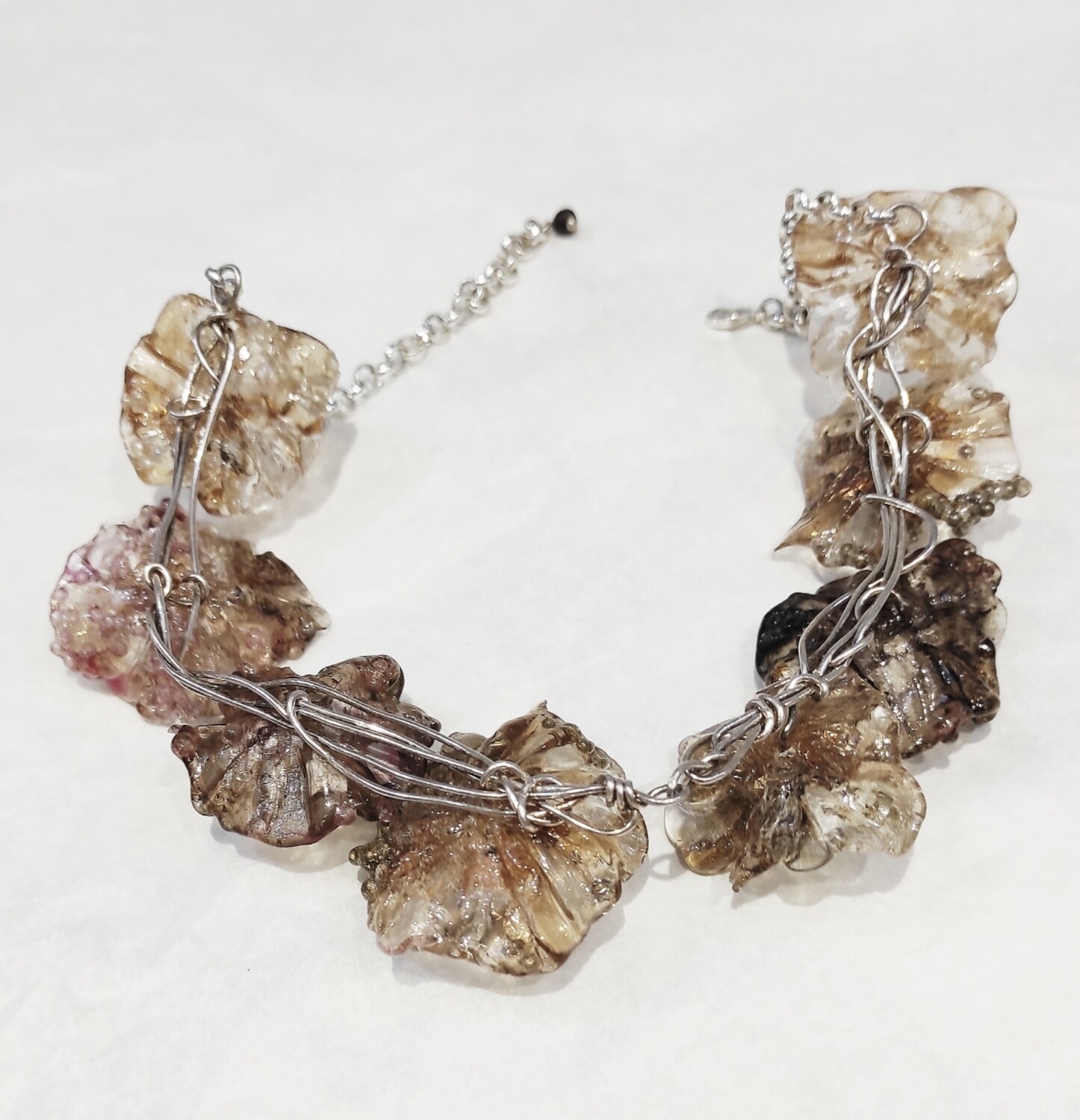 Réalisé en Sircrea sculpté et orné de perles facettées en Quartz Fumé, il associe légèreté et raffinement. Sa chaîne aux larges anneaux permet un réglage multiple pour s’adapter parfaitement à votre style.