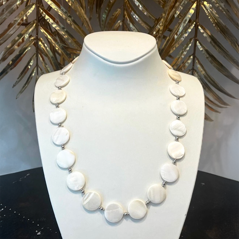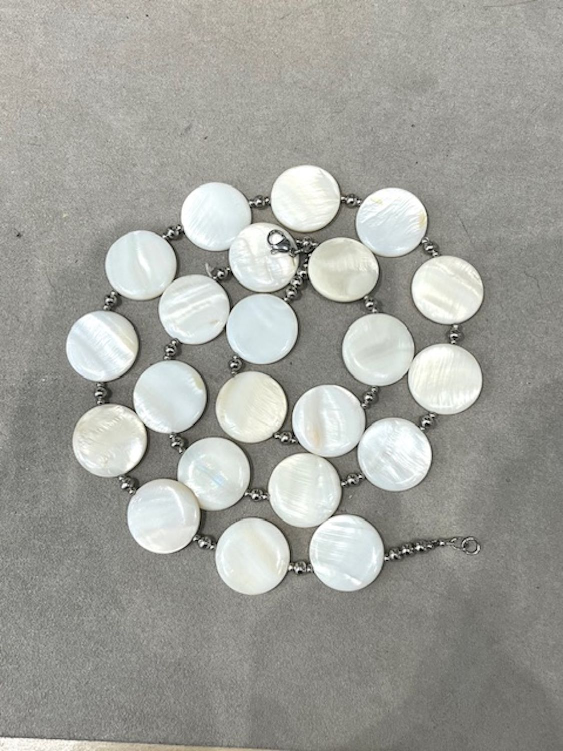 Sautoir ou Grand collier en Nacre et Perles d’Acier